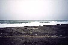 relatively calm seas, and to the other, stormy raging seas with large waves